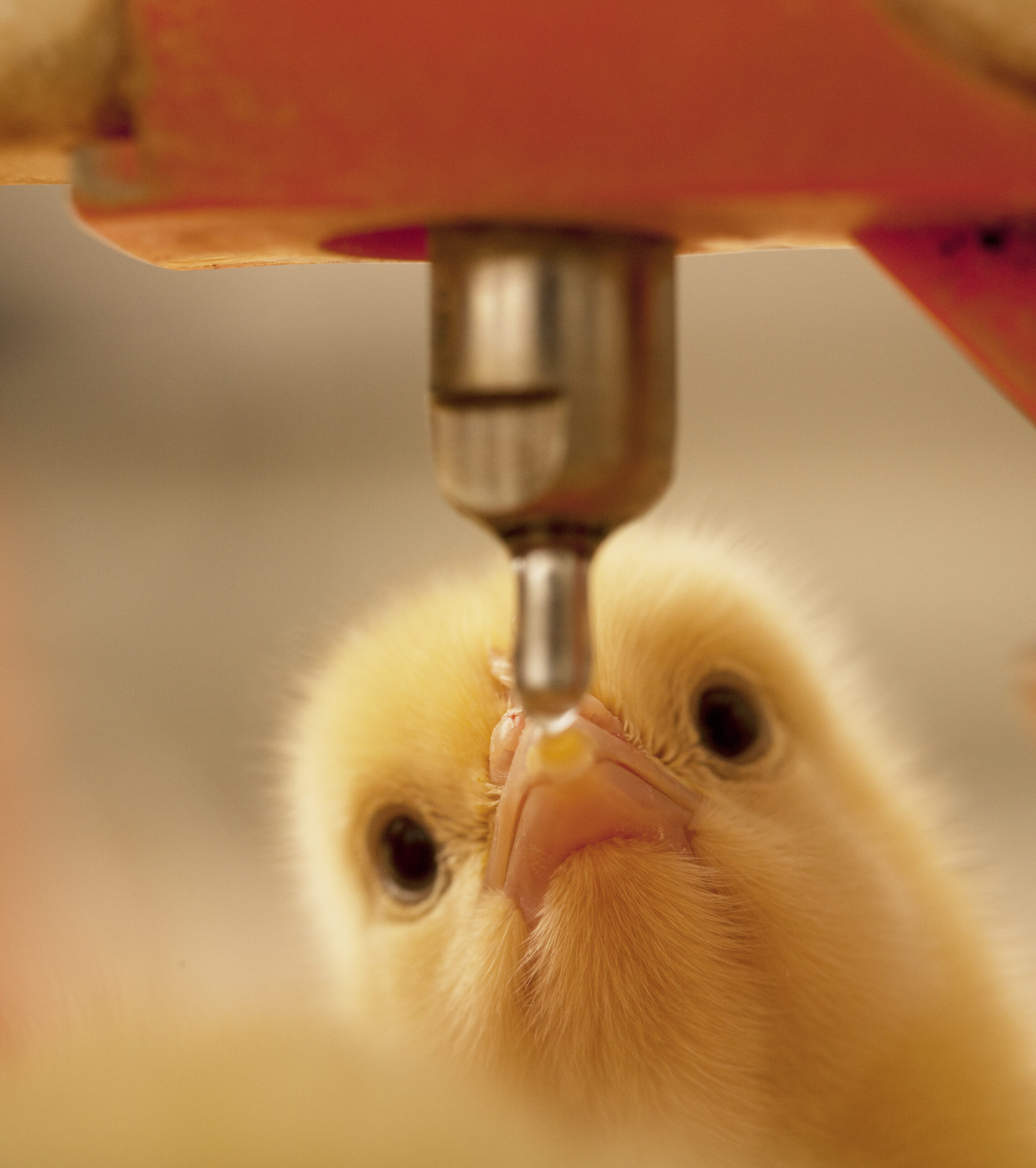 Even the best water quality is of little value if it is not readily available to the chickens. Poultry must be able to drink water at any time of the day. The number of drinking nipples, their height, flow rate and pressure must be tailored to the animal category, age and housing.